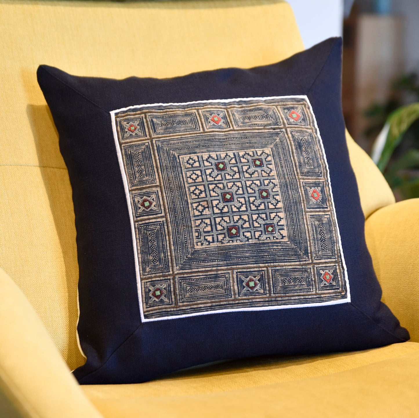 - Dekorationslappen är 100 % handgjord av H'mong-hantverkare i norra Vietnam. Den är återanvänd av H'mong-tyg med detaljerad batikmålning, indigofärgning och handbroderi vilket skapar en unik design.