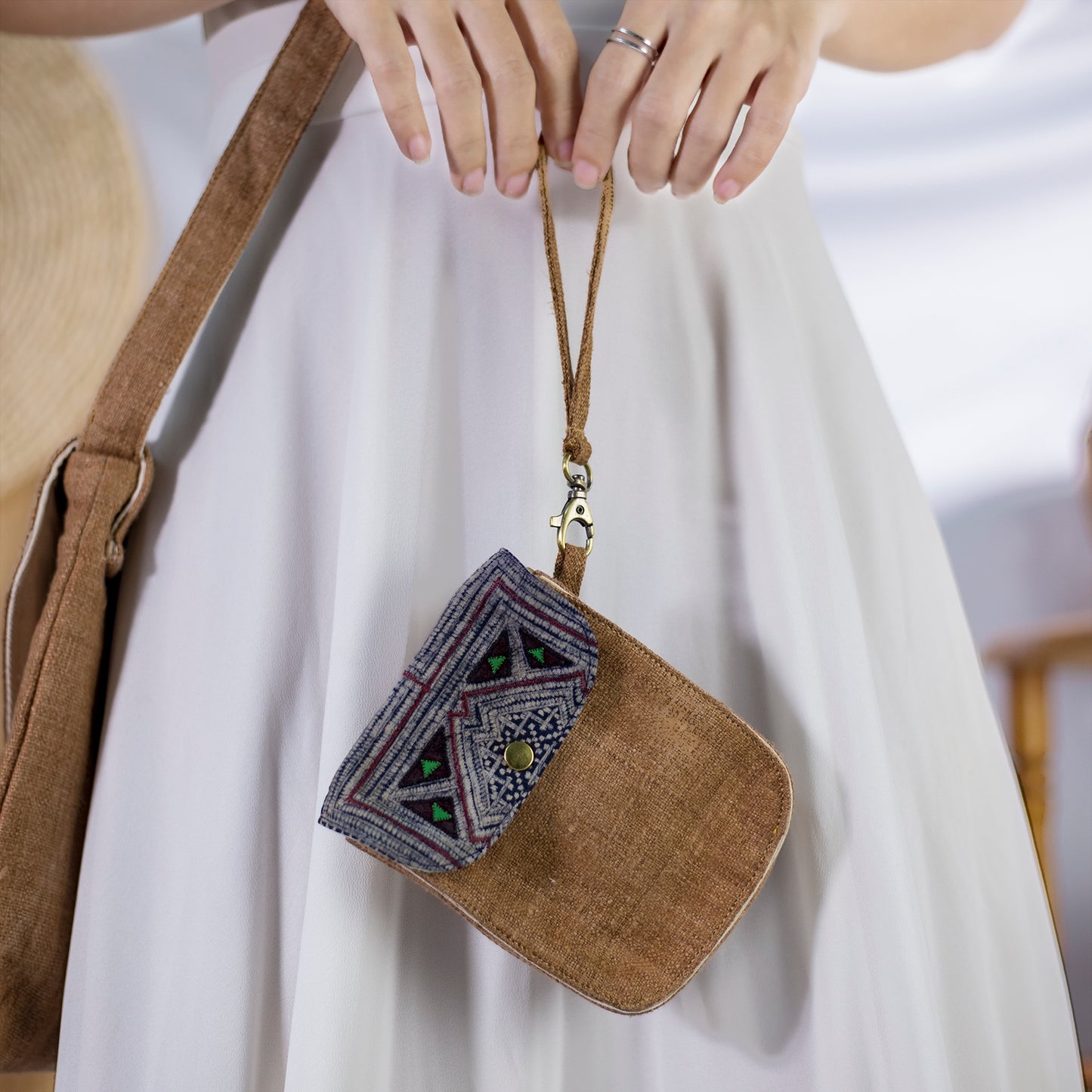 - Handvävt hampamaterial: Denna telefonbältesväska är tillverkad av naturlig hampa, som är handvävd och färgad med växtbaserade ingredienser av skickliga H'mong-hantverkare från norra Vietnam, vilket gör denna väska till ett etiskt val för medvetna konsumenter.