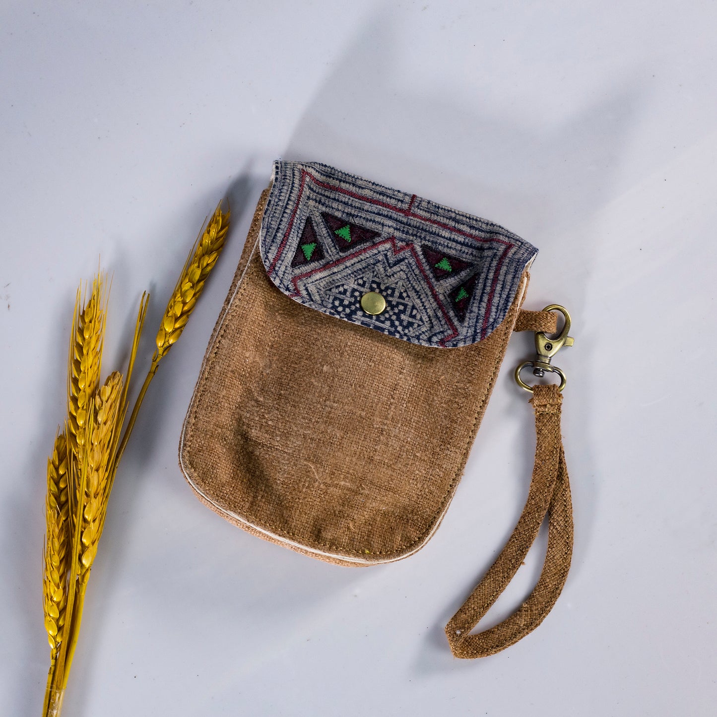 Handgjord hampa telefonväska – Brun Mobilväska med batikklaff